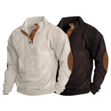 Mens Classic Button Neck Pullover Sweater With Elbow Patches