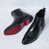 The boots feature a smooth, structured shape that maintains a refined look throughout the day. Elastic side panels and a rear pull tab allow easy on-and-off wear without compromising fit. The rounded toe provides sufficient room for comfortable movement. This construction supports extended wear during work or outings.