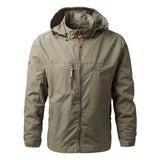 This tactical jacket is structured to provide steady protection during outdoor activities. Its surface design supports water resistance while maintaining flexibility for movement. The detachable hood offers adaptable coverage, making the jacket suitable for shifting weather conditions.