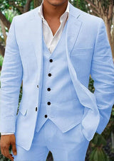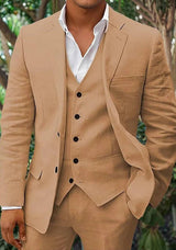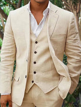 Men's Linen 3-Piece Suit for Beach Weddings and Summer Parties