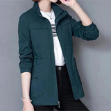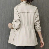 Lightweight trench coat with adjustable waist and storage pockets