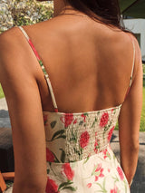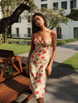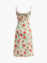 Floral Ruched Button Detail Dress