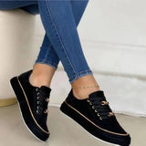 These low-top lace-up sneakers combine everyday versatility with a modern edge. Featuring a sleek platform sole and a bold decorative chain accent, they offer a stylish touch without compromising on comfort. Designed for year-round wear, these sneakers are ideal for casual outings, workdays, or weekend strolls.