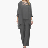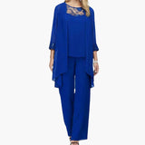 - Design: Three-piece coordinated set (jacket, vest, trousers)