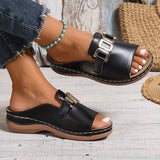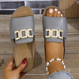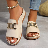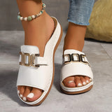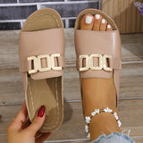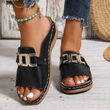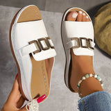 These open-toe slip-on sandals are designed for everyday comfort and versatile styling. Featuring a bold statement buckle and cushioned footbed, they provide a secure and comfortable fit for extended wear. The breathable structure helps keep feet cool, making them ideal for warm-weather outings, casual strolls, or relaxed weekends.