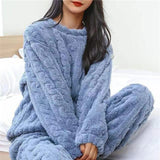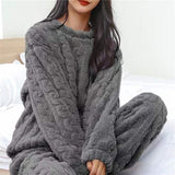 The soft gentle fabric feels luxuriously comfortable against your skin designed specifically for maximum relaxation and restful sleep. The complete matching set includes a long sleeved top and coordinating pants that look cute while keeping you warm throughout the night. The breathable construction allows good air circulation preventing overheating so you stay pleasantly cool all night long.