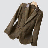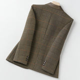 The check pattern provides a classic visual texture that pairs easily with trousers, jeans, or skirts. The blazer can be worn in office environments, meetings, or smart casual settings. Its neutral design allows flexible outfit combinations. This makes it suitable for a wide range of daily and seasonal uses.