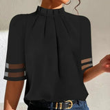 The lightweight structure supports airflow and helps maintain comfort during extended wear. This design makes the blouse suitable for indoor settings and mild outdoor conditions. The fabric allows ease of movement without feeling restrictive. It is appropriate for day-long use in warmer or transitional seasons.