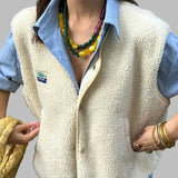 The clean and timeless cut supports a refined appearance suitable for various outfits. A button-front closure allows flexible wear depending on temperature and setting. The vest pairs easily with skirts, trousers, or layered outfits. Its design supports use across multiple everyday occasions.