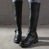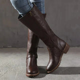 An inner side zipper allows the boots to be put on and removed easily. This feature supports convenience while maintaining a clean exterior appearance. The structure allows the boots to be worn with dresses, skirts, or fitted pants. The design supports both casual and semi-formal styling needs.