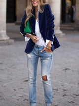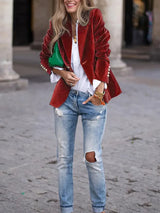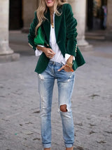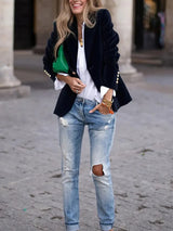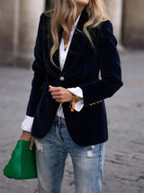 Thanks to its clean lines and classic design, this blazer transitions seamlessly between outfits. Wear it with trousers for a professional look, or pair it with denim for a relaxed, smart-casual style. Decorative cuff accents add a subtle note of sophistication, making it suitable for both everyday wear and special outings.