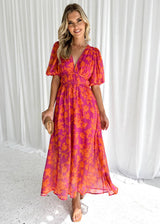 This summer dress offers a light and feminine design, ideal for warm weather. Its flowing midi length provides a balanced look that works well for both casual and semi-formal settings. The flattering V-neckline adds a touch of refinement, while still ensuring everyday comfort.