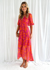 The dress is enhanced with puff sleeves, which create a subtle statement while maintaining a relaxed fit. The cut allows for easy movement, making it suitable for daily wear or special outings. Its lightweight structure ensures it can be worn comfortably throughout the day.