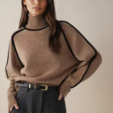 This women’s turtleneck sweater is designed to provide warmth and coverage during cooler weather conditions. The high neckline supports insulation around the neck while maintaining a clean and structured appearance. The sweater is suitable for everyday wear during fall and winter seasons. It is designed for use in both casual and semi-formal settings.