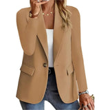This women’s blazer is designed with a straight silhouette and functional layout intended for repeated use across different settings. The form provides coverage at the shoulders and follows the waist with a mild taper for balanced shaping. The full-length sleeves and open front structure support daily wear. A buckle pocket is included on the side, allowing for small-item storage without affecting the overall structure. Suitable for formal, casual, and transitional use, this blazer is available in a variety of color options to coordinate with multiple outfit styles.