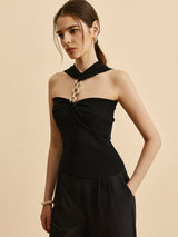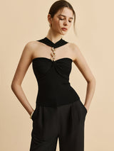 Halter Neck Chain Detail Knit Top