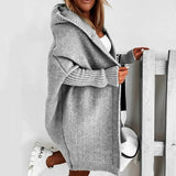 This hooded knit cardigan combines soft comfort with practical style, making it an essential layering piece for cooler seasons. Designed with an oversized hood and ribbed cuffs, it provides warmth without feeling bulky, perfect for wearing indoors or outdoors.