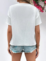 • Design: Short-sleeved with a pullover style, making it easy to wear and versatile for multiple looks.