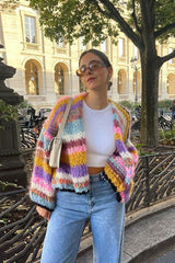 Add this striped knit crop cardigan to your collection for a touch of modern elegance. Pair it with high-waisted jeans or a skirt for a complete look.
