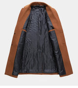 The coat fits smooth over suits or sweaters without getting bunchy or weird. It hits right at mid thigh, perfect for both sitting and walking around. The tailored design keeps everything looking polished without trying too hard.
