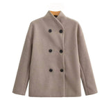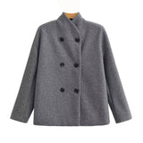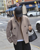 The double breasted front naturally shapes to your body when you button up. The collar sits up around your neck to block out cold air and frame your face nicely. It hits right at your waist, creating that perfect cropped look everyone's after.