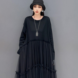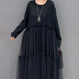Embrace elegance with the Claudia Loose Fold Patchwork Mesh Dress, a perfect choice for the 2024 autumn season. This sophisticated long-sleeve dress features a unique patchwork design, combining loose folds and mesh accents for a chic and contemporary look. The classic black color adds a touch of refinement, making it suitable for various occasions.