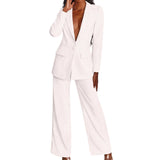 The blazer's got a single button to keep it in place and two flap pockets so you can stash your phone and keys. It has a classic lapel collar that looks professional without trying too hard. The ankle length pants make your legs look longer with clean stitching around your waist.
