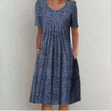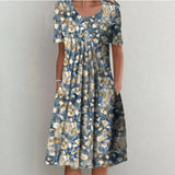 The floral print offers a classic, versatile look appropriate for casual routines and outdoor occasions. The dress maintains a simple silhouette that adapts well to various settings. Its overall shape supports a flattering appearance without restricting comfort.