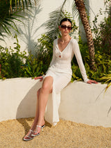 Flower Detail Keyhole Neckline Dress