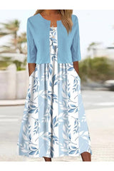 Half Sleeve Floral Elegant Two-Piece Midi Dress