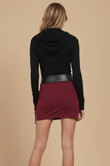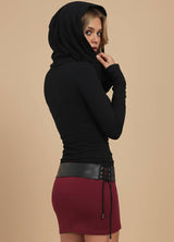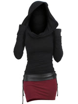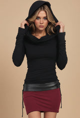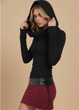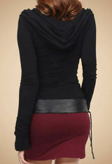 Pull it on like a regular hoodie, then tie the belt around your waist to give it shape. The hood lays flat or pulls up when you need it. It hits just above your knee and looks good with sneakers, boots, or heels.