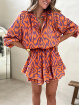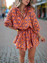 This long sleeve mini dress combines a relaxed silhouette with feminine detailing for effortless styling. Designed with a split neckline, elastic waist, and layered ruffle hem, it offers comfort and easy movement while maintaining a polished look. Perfect for spring, summer, and vacation days, it’s suitable for casual outings and warm-weather events.