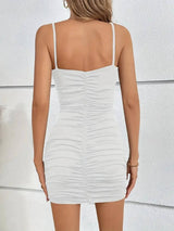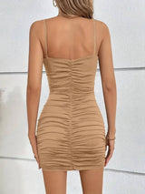 The deep V neck frames your neckline while those skinny straps keep everything in place as you move around. The fabric basically hugs your body like a second skin, showing off your shape without feeling tight. Just slip it on and you're good to go, no complicated zippers or hooks to mess with.