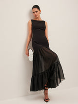 Sheer Panel Back-Tie Ruffled Hem Dress
