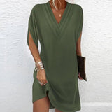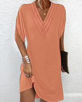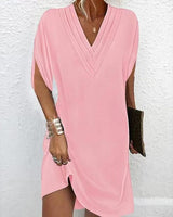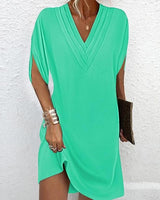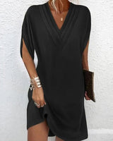 With a smooth V-shaped neckline and relaxed cut, this dress elongates the figure for a graceful, lengthened appearance. The gently shaped sleeves add a subtle touch of refinement while maintaining comfort during movement. Lightweight and breathable, it’s crafted to allow all-day wear across varying settings and seasons. The clean drape ensures effortless coordination with jackets, accessories, or footwear of choice.