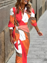 This dress features a wrap design with an adjustable tie closure and a collared neckline. Constructed from lightweight fabric, it is suitable for warm-weather wear in casual or occasional settings.
