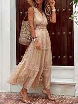 This women’s boho maxi dress is designed for summer wear, providing a comfortable and relaxed fit suitable for warm days. Its flowing silhouette and breathable construction make it versatile for casual outdoor activities, including beach days, festivals, or summer outings. The bohemian-inspired details provide a simple, stylish appearance while allowing freedom of movement and ease of wear.