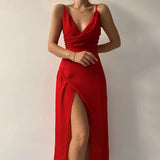 Women’s V-Neck Midi Dress with Side Slit