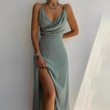 A side slit adds functional movement while preserving the overall silhouette. The midi length provides coverage while remaining suitable for warmer conditions. The flowing cut allows comfortable wear during extended events. The design is intended for occasions that require both comfort and structure.