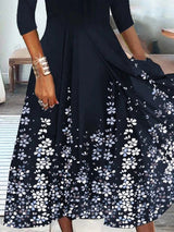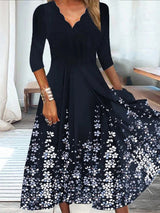 1 Ă— Women's Floral V-Neck 3/4 Sleeve Loose Maxi Dress