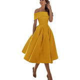 Women's midi off shoulder dress with flared skirt in lightweight fabric