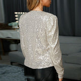 This jacket is designed with a straight, tailored outline intended for evening settings. The surface incorporates subtle reflective elements arranged to create a consistent shimmer without overwhelming the silhouette. The overall structure maintains a clean appearance suitable for coordinated outfits. The shape supports a balanced fit across the upper body.