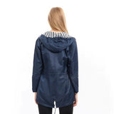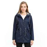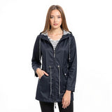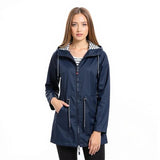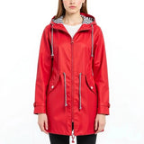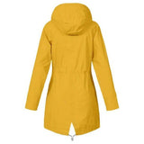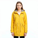 Long raincoat with adjustable hood and waterproof design