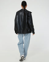 The oversized cut creates a relaxed and balanced appearance without restricting movement. This structure allows the jacket to be worn comfortably over different outfit layers. The simple design supports versatile styling across casual and streetwear looks. It is suitable for repeated seasonal use.