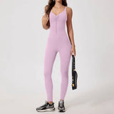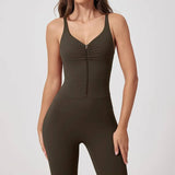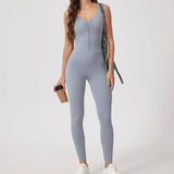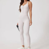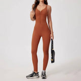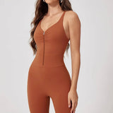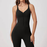 Slip into the jumpsuit and zip the front to your coverage spot. Compression zones through the waist and butt hold everything in place while you move. The nylon spandex blend stretches four ways, keeping shape through squats, lunges, and bends.