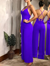 - 1 x Women's Solid Criss Cross Tie Backless Cami Jumpsuit