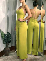 WOMEN'S SOLID CRISS CROSS TIE BACKLESS CAMI JUMPSUIT SPECS