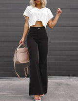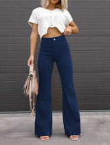 The soft corduroy stretches and moves when you do instead of staying stiff. The high waist hugs you right without pinching or rolling down every time you sit. The flared legs flow naturally to give you that flattering shape that works anywhere.