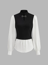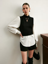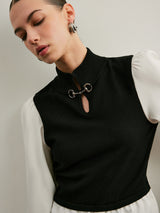 2 in 1 Color Block Metal-Detail Knit Top