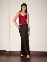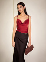 Cowl Neck Metal-Detail Satin Cami Top